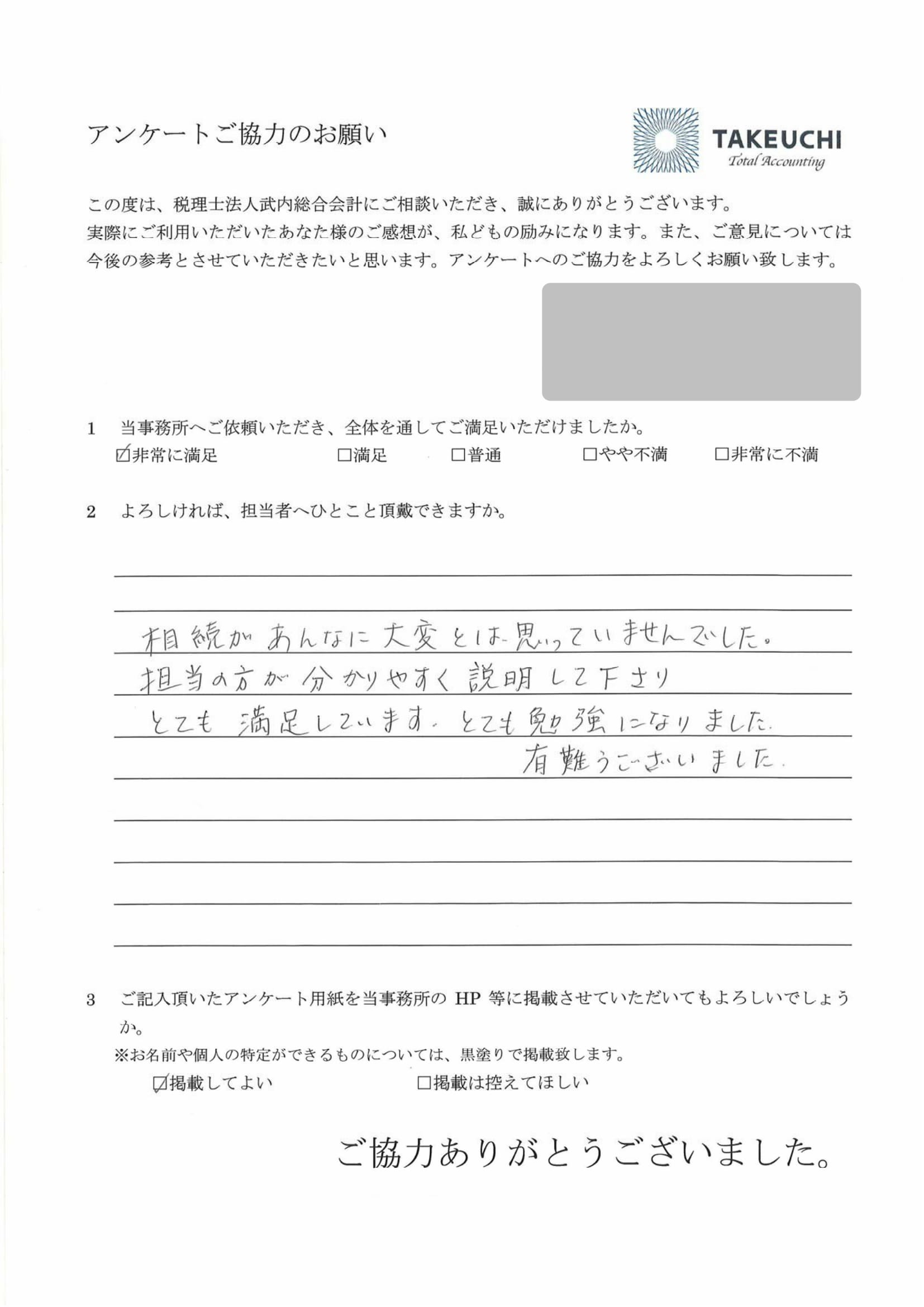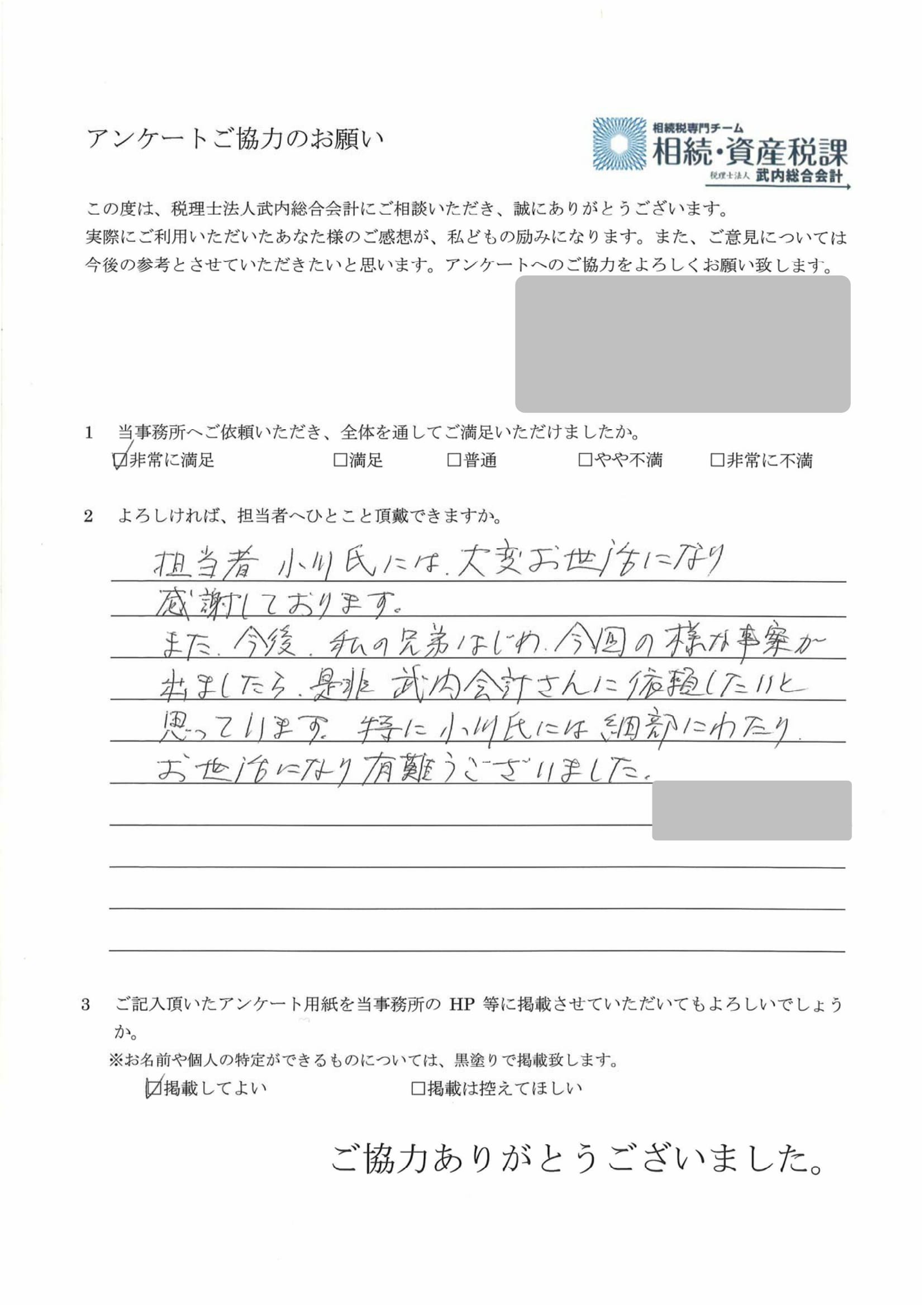 また今後、私の兄弟はじめ今回の様な事案が出ましたら、是非武内会計さんに依頼したいと思っています。